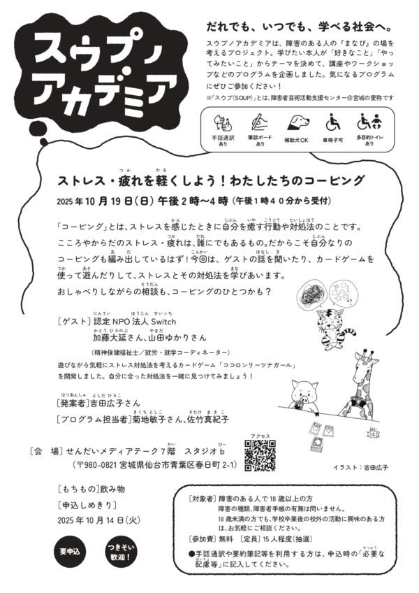 - 手話通訳・要約筆記等を希望する場合はお申し込み時の「必要な配慮」にご記入ください。